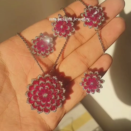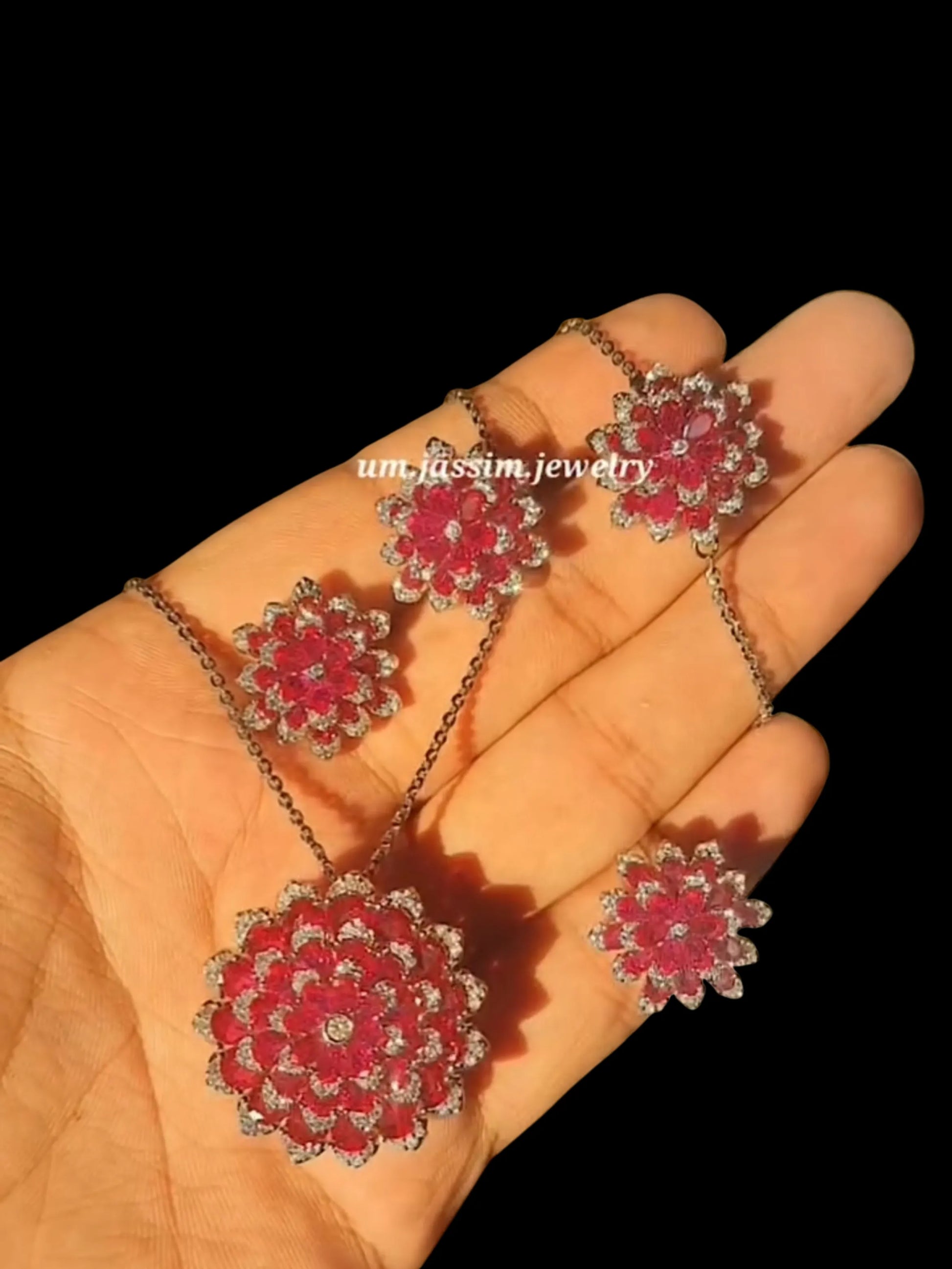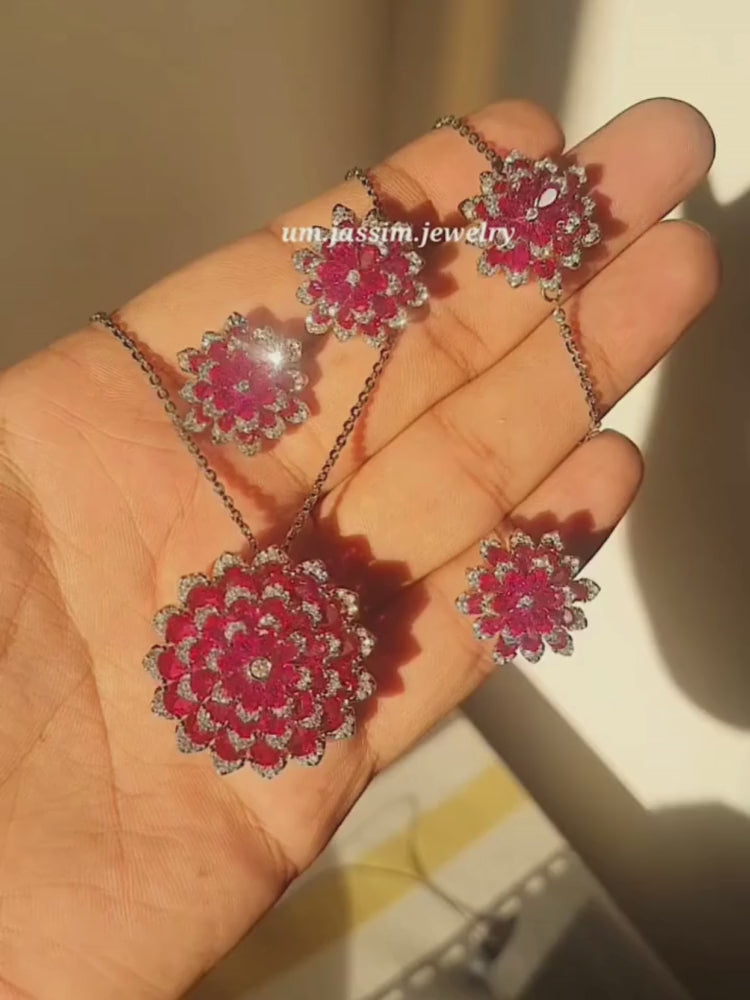 طقم يتلألأ بلمعه ألماسيه في طبقات تنبض بسحر خالد وفخامه ملكيه يتجسد بين حجر باللون الوردي شغل يدوي بجودة عاليه وتصميم راقي 💎