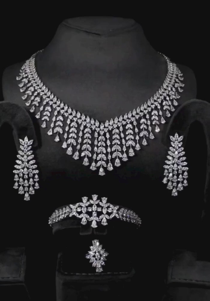 طقم يتلألأ بلمعه ألماسيه في طبقات تنبض بسحر خالد وفخامه ملكيه يتجسد بين حجر ابيضّ شغل يدوي بجودة عاليه وتصميم راقي 💎