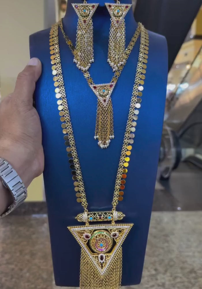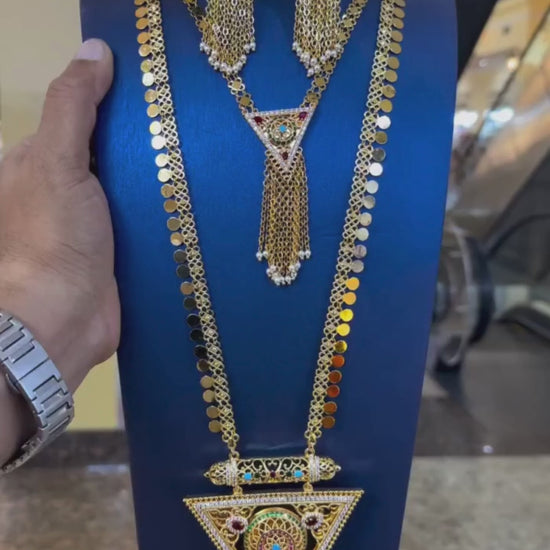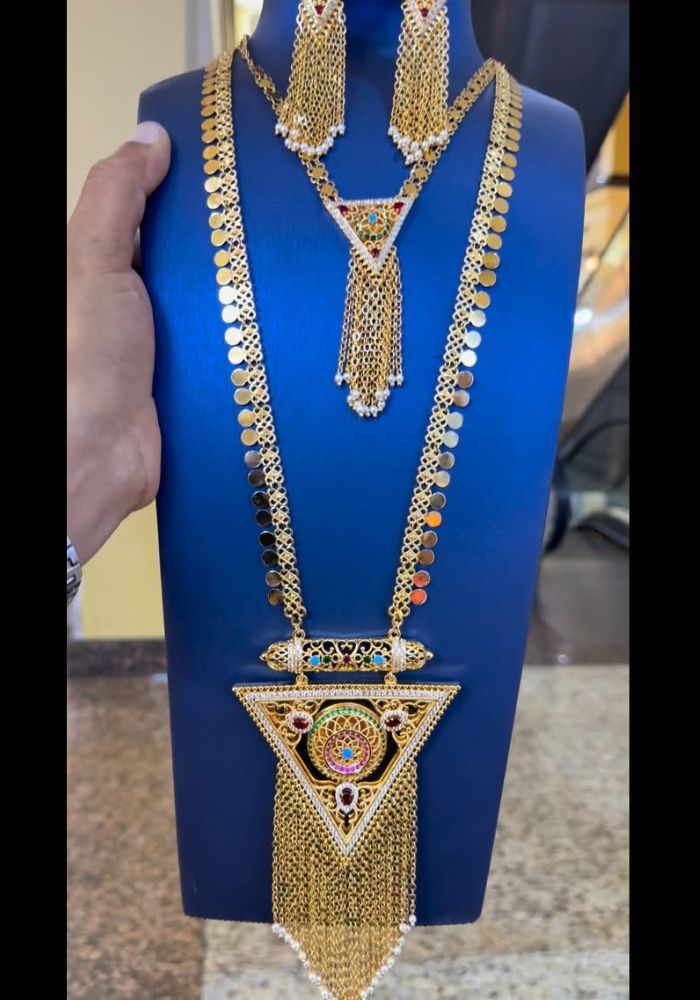 طقم تصميم خليجي راقي ذهبي اللون في طبقات تنبض بسحر خالد وفخامه ملكيه.