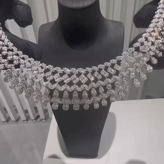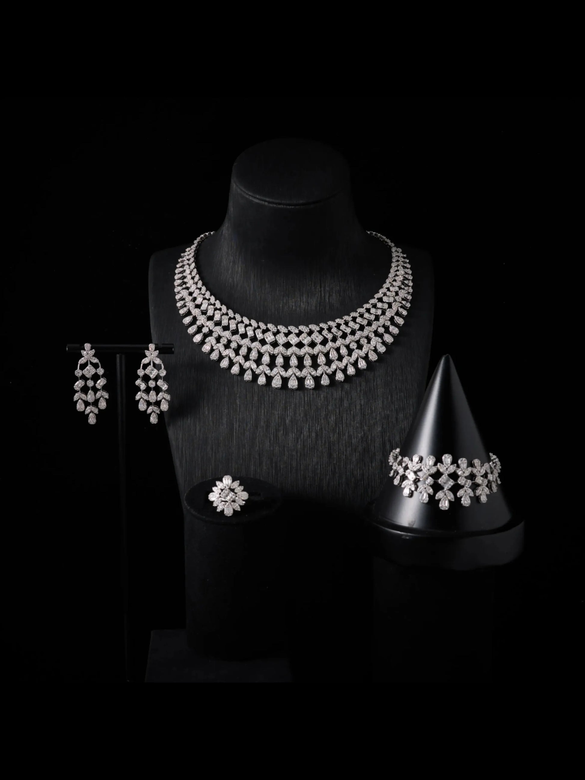 طقم يتلألأ بلمعه ألماسيه في طبقات تنبض بسحر خالد وفخامه ملكيه يتجسد بين حجر ابيضّ شغل يدوي بجودة عاليه وتصميم راقي 💎