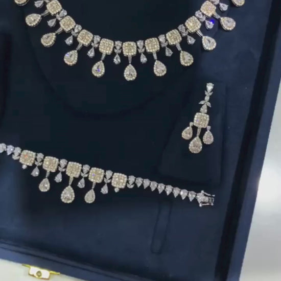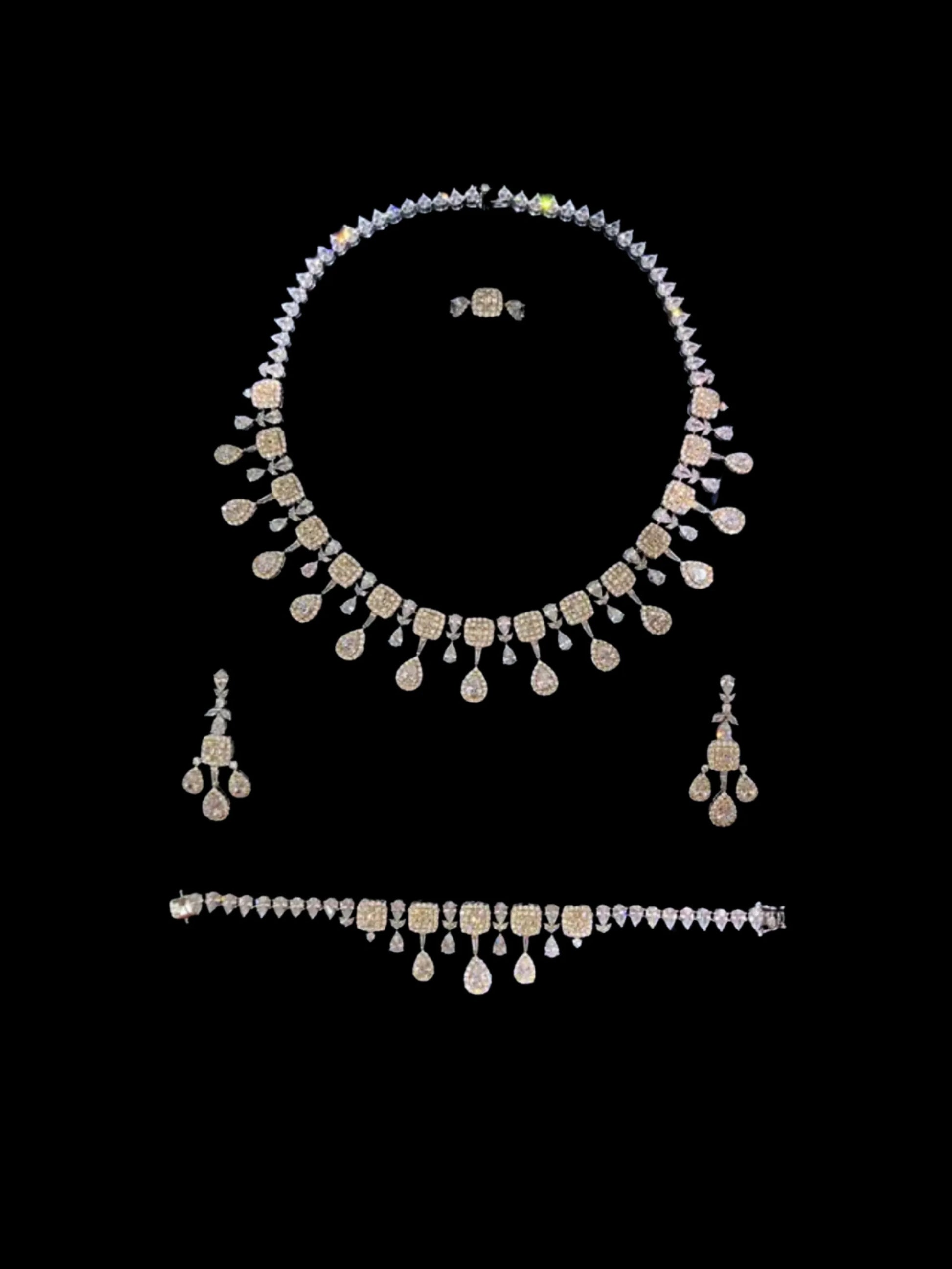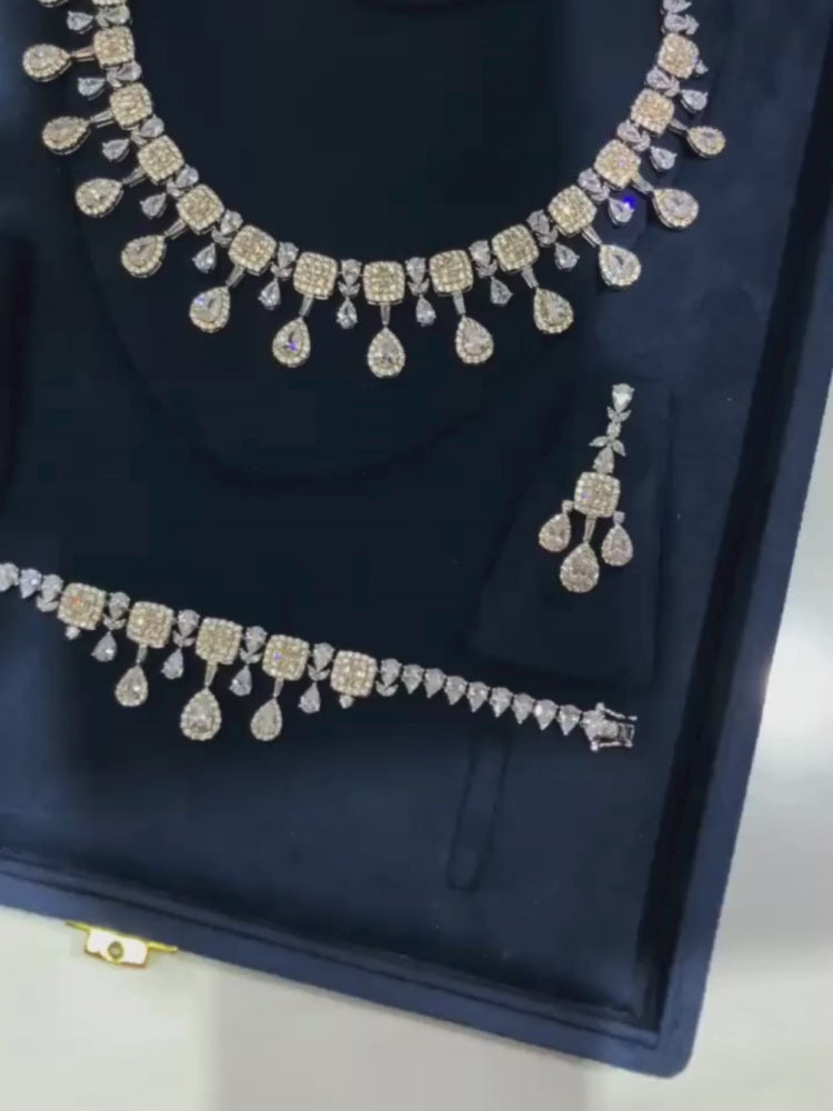 طقم يتلألأ بلمعه ألماسيه في طبقات تنبض بسحر خالد وفخامه ملكيه يتجسد بين حجر ابيضّ شغل يدوي بجودة عاليه وتصميم راقي 💎