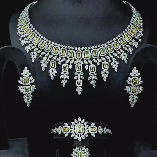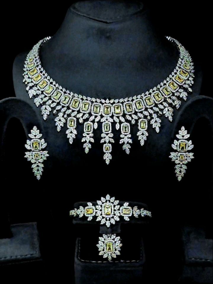 طقم يتلألأ بلمعه ألماسيه في طبقات تنبض بسحر خالد وفخامه ملكيه يتجسد بين حجر باللون لأصفر الصافي